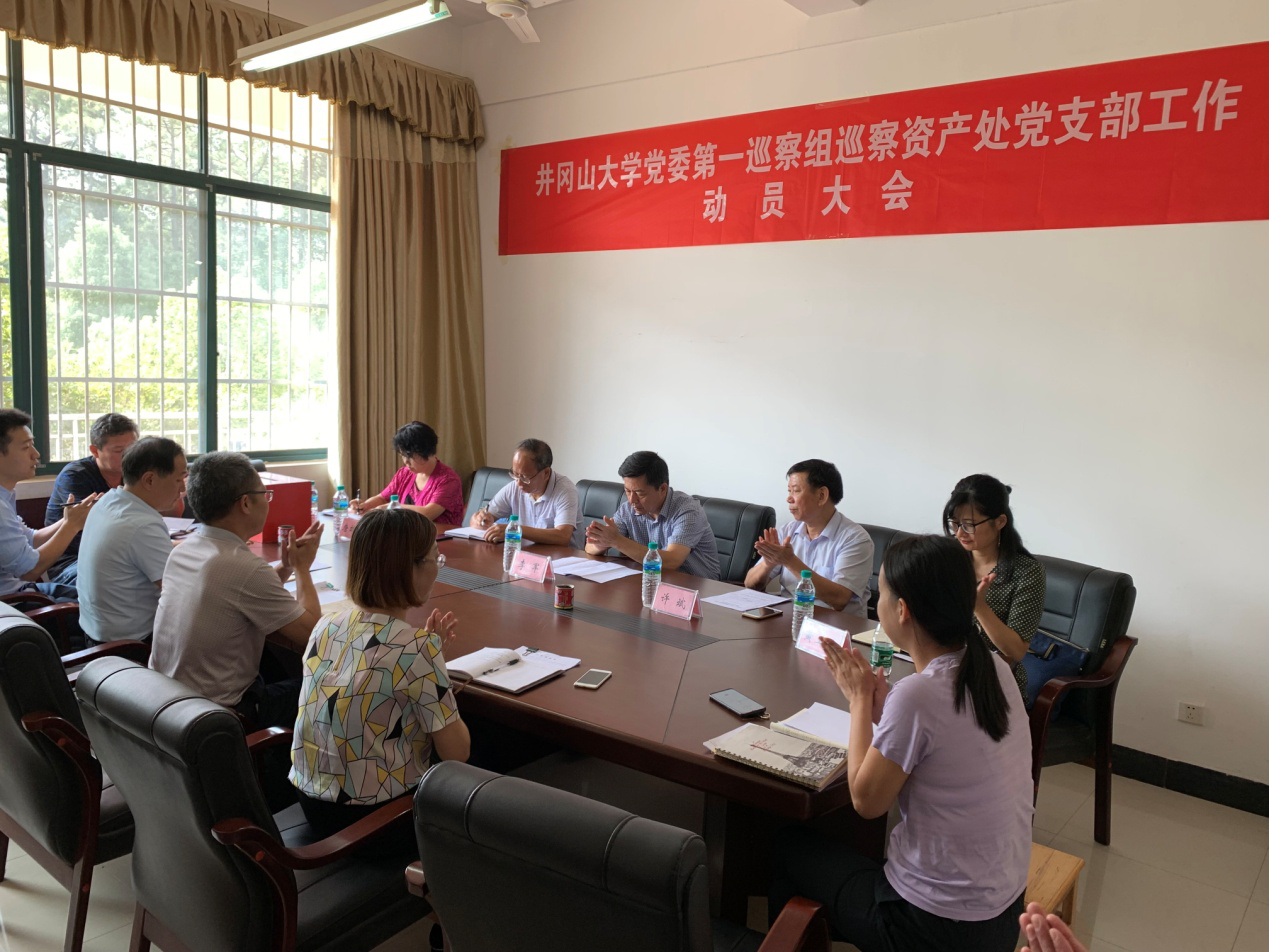 根据校党委巡察工作统一部署,2019年10月10日上午,井冈山大学党委第一巡察组巡察资产管理处党支部工作动员大会在资产管理处会议室召开。校党委常委、副校长李军,党委第一巡察组成员、资产管理处全处人员出席了会议。会议由资产管理处党支部书记黄秋如主持,李军副校长,党委第一巡察组组长许斌作了重要讲话,黄秋如代表资产管理处党支部作了表态发言。