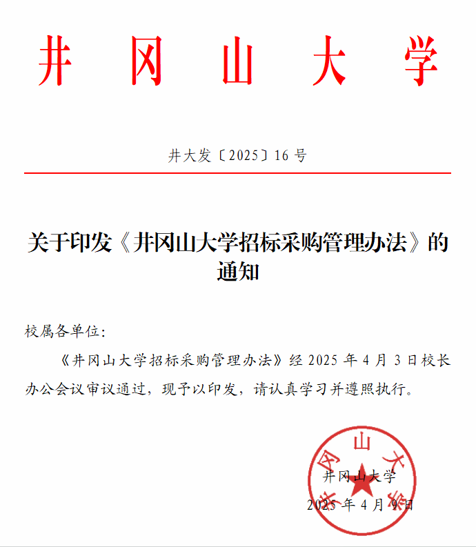 井大发〔2025〕16号关于印发《井冈山大学招标采购管理办法》的通知.doc